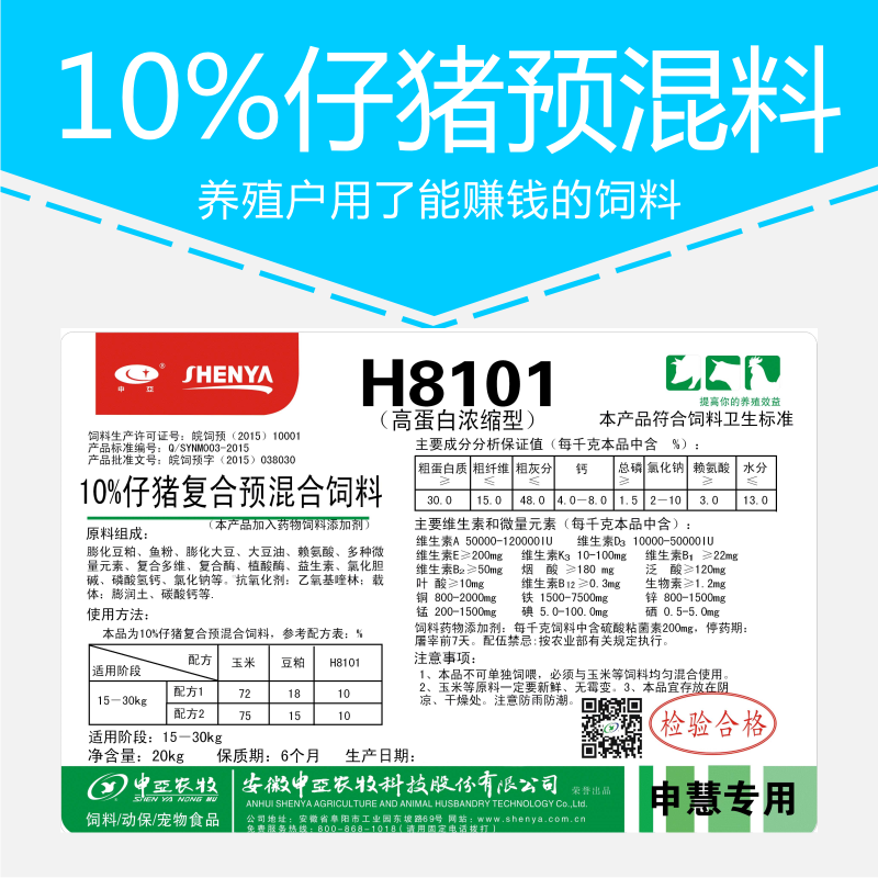 【申慧直通车】饲料10%仔猪预混料20kg适用15-30kg仔猪小猪后期饲料H8101