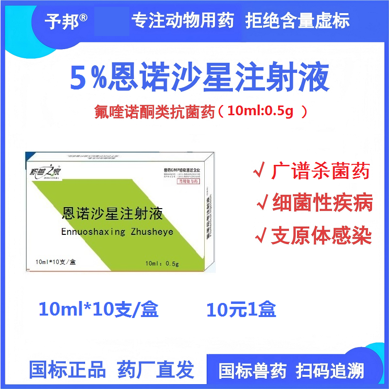 [兽用处方药]10ml*10支/盒 【予邦】5%恩诺沙星注射液10ml兽用兽药抗菌药 国标可追溯 细菌性疾病支原体感染细菌感染