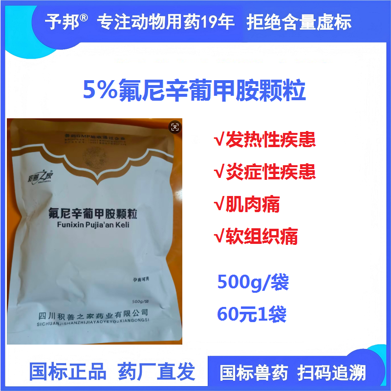 予邦兽药 氟尼辛葡甲胺颗粒 500g 国标可追溯 解热镇痛消炎 肌肉痛 猪牛羊马犬 孕畜可用