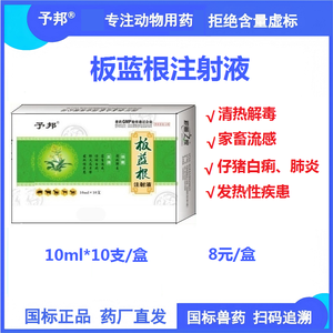 【予邦】板蓝根注射液10ml 兽用兽药 国标可追溯 清热解毒家畜流感、仔猪白痢 肺炎及某些发热性疾患,10ml*10支