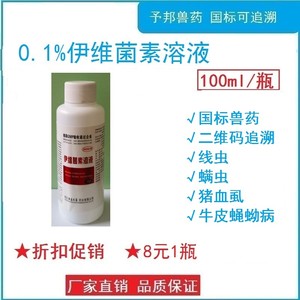 予邦兽药伊维菌素溶液兽用猪牛羊马猫狗宠物体内外驱虫药100ml