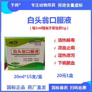 予邦】白头翁口服液20ml*15支兽用兽药 国标可追溯 清热解毒凉血止痢湿热泄泻下痢脓血猪牛羊可用