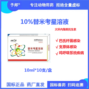 【予邦】10%替米考星溶液10ml*10支/盒-巴氏杆菌感染,支原体感染