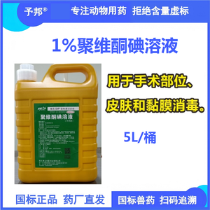 【予邦】1%聚维酮碘溶液5L 消毒防腐药带猪消毒皮肤病湿疹皮炎治疗环境净化圈舍消毒器具消毒饮水消毒