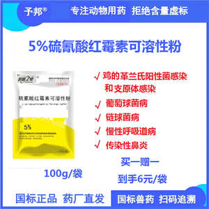 【予邦】硫氰酸红霉素可溶性粉100g/袋-国标可追溯,慢性呼吸道病传染性鼻炎