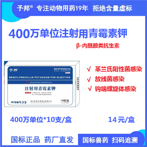 【予邦】400万单位注射用青霉素钾10支兽用兽药 国标可追溯 抗生素抗菌细菌感染猪牛羊马犬可用