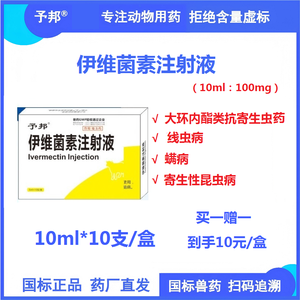 【予邦】伊维菌素溶液20ml*10支 兽用兽药 国标可追溯 线虫 蜱虫寄生性昆虫猪牛羊马犬可用
