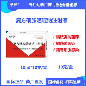 【予邦】15%磺胺间甲氧嘧啶钠注射液10ml*10支 兽药兽用 国标可追溯 敏感菌感染 弓形虫感染